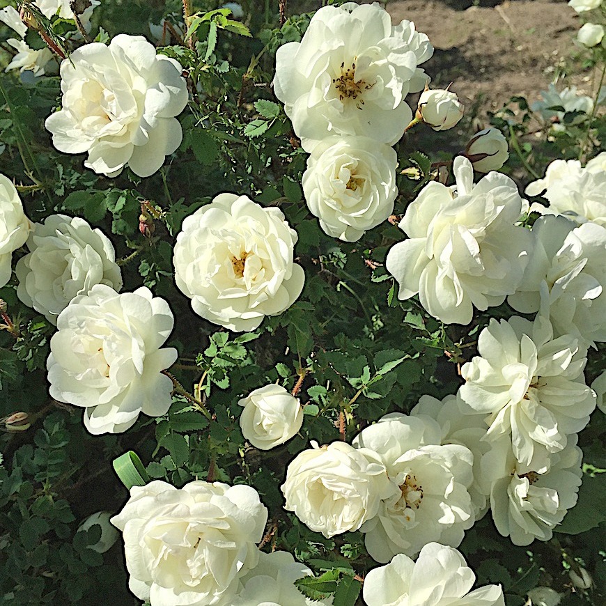 härdig, lågväxande buskros med tätt växtsätt. Den blommar rikligt med fyllda, bollformade till skålformade, vita, doftande blommor i juni. Höjd 0,6-1,2 m,ofta bredare. Zon 1-7.